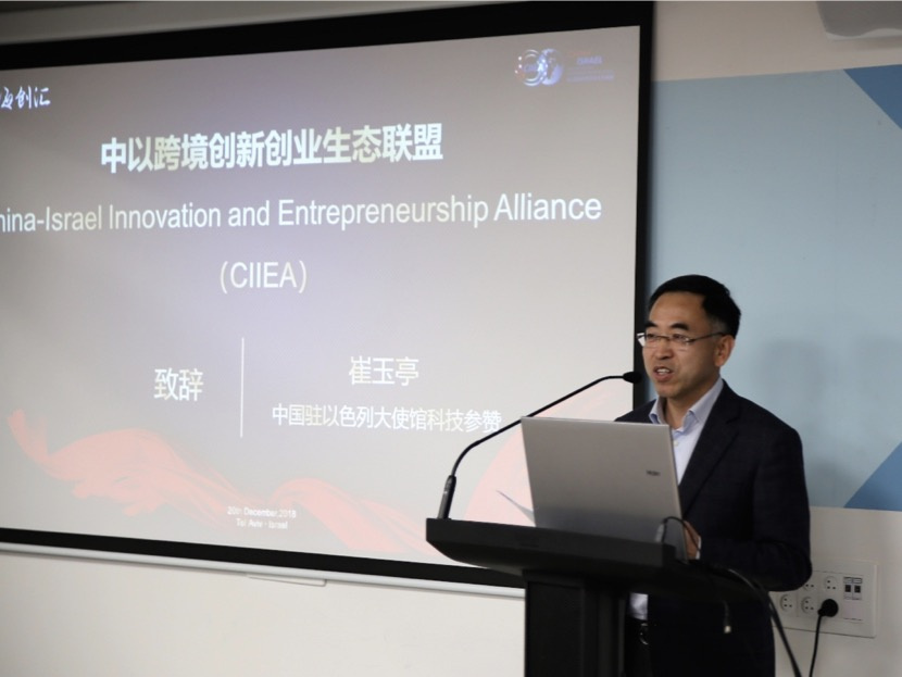中国驻以色列国大使馆科技参赞崔玉亭发表致辞