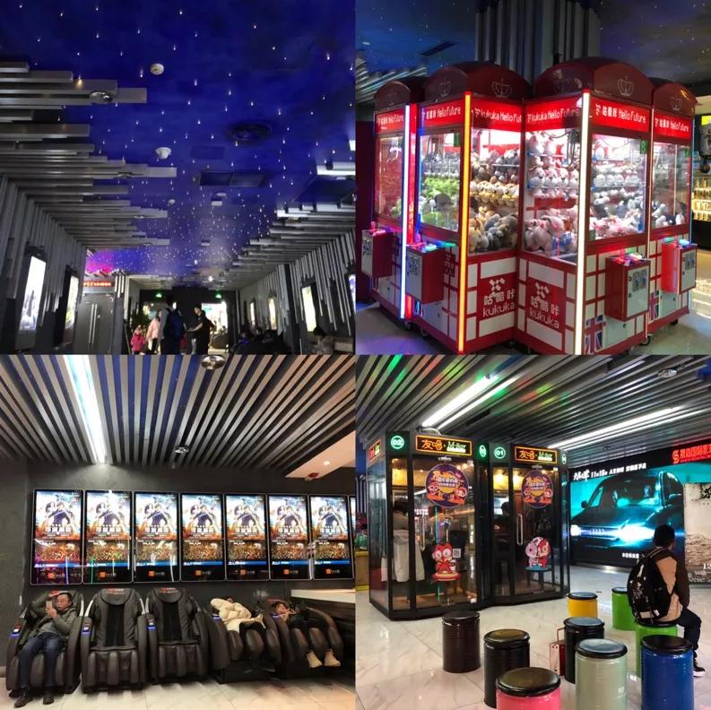 想要打造开放式空间的,不止是晟嘉国际影城北京新华店。一些开在新商场里的新影院,由于可利用空间更大,大多也都在尝试着走这样的综合业态模式。