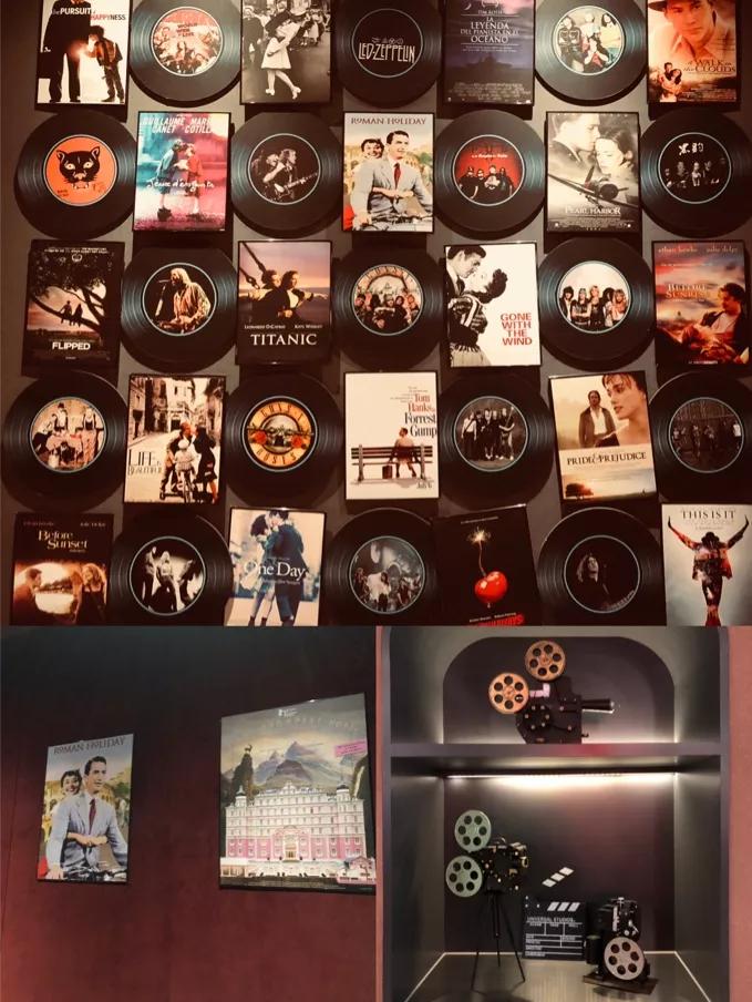 三克影院的整体装潢呈现的是一种复古感,恍若那些人儿能带着老旧电影院的光影穿梭而来。中间是餐厅,旁边三个影厅依次而立,红色幕布门帘之内便是影厅通道,墙上挂着《罗马假日》《两小无猜》等经典电影的海报。此外,这里随处可见电影元素装的饰品,分明是一家迷影餐厅。