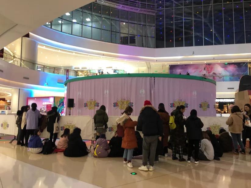 而在五层电影院旁,QQ音乐推出的脱口秀直播+线下节目《见面吧电台》,周二到周六的每天晚上八点,都会有一位爱豆来录制节目。“前几天王菊来了,人可多了。”某商户老板说道。而当晚则是偶像练习生中的李希侃登场,不到八点,早已有几十个迷妹粉丝守候在外。