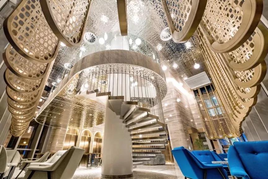 走进影院,不仅可以看到各种常见的娱乐休闲设施,同时还设有餐饮区,咖啡厅等具有空间感的休息区,最特别的是通往影厅的时空隧道,走进其中,仿佛置身于梦幻之中。