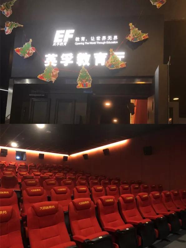 当然,为了增加收入,市场部的小伙伴们也是各出奇招。比如和大眼睛票务的签约合作,拿下了英孚教育冠名的影厅。
