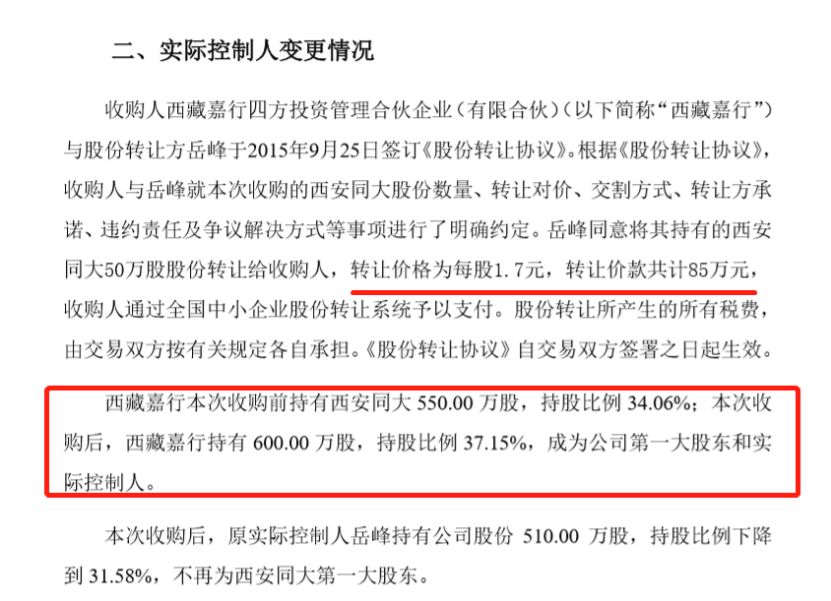 关于嘉行传媒的腾飞,要从2015年借壳新三板公司西安同大股份有限公司说起。2015年9月,西藏嘉行通过收购持有西安同大 600.00 万股,持股比例 37.15%,成为公司第一大股东和实际控制人。