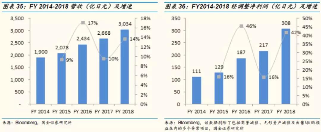 目前集团营收主要来自日本国内,占比在60%左右,日本销售同比下降2.8%,而亚洲、美国和欧洲的增速相对较快,分别为14.6%、11.1%和7%。