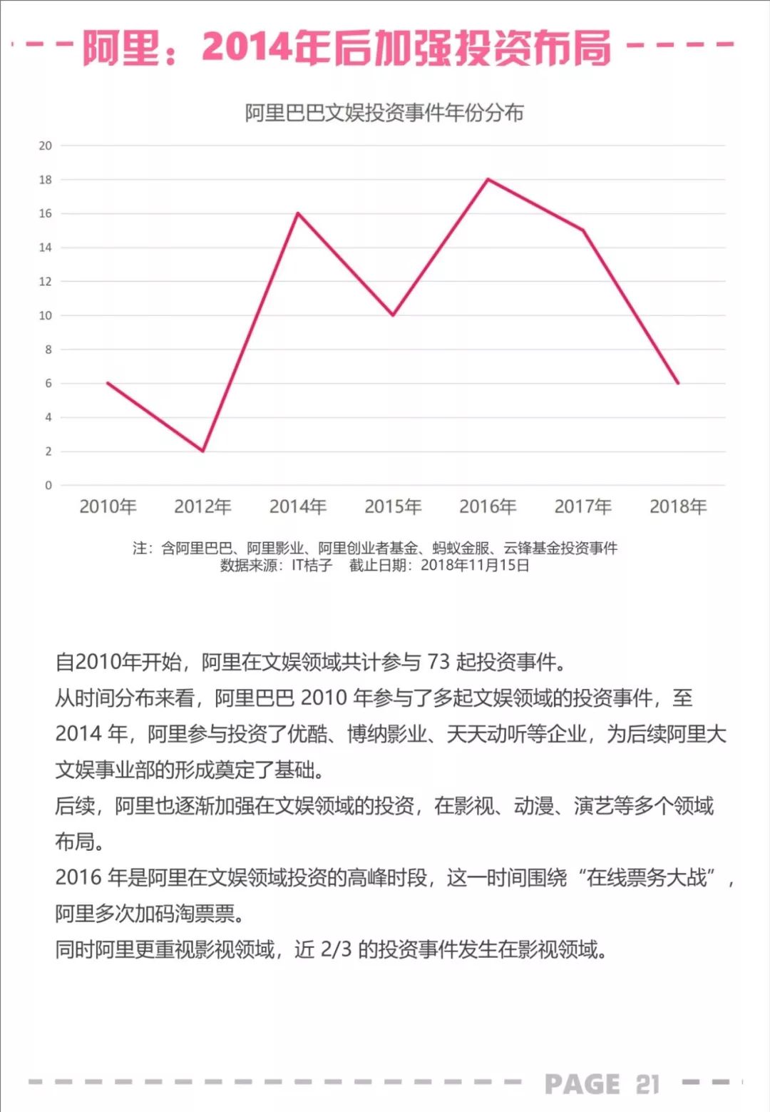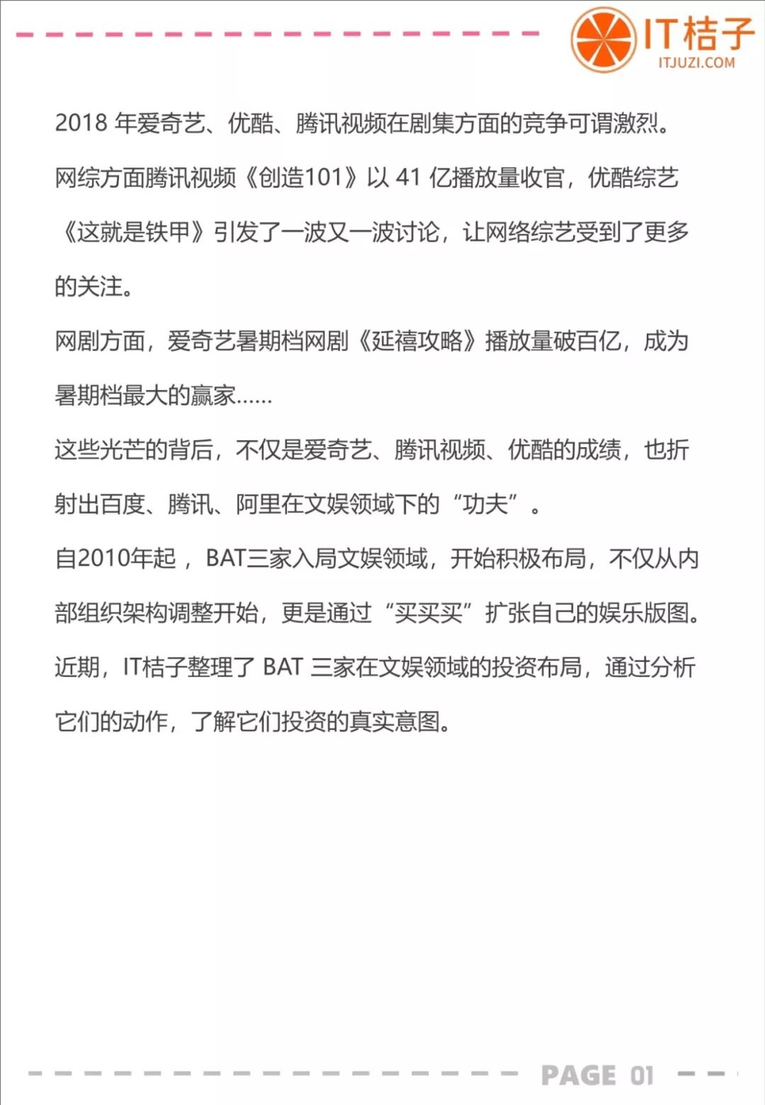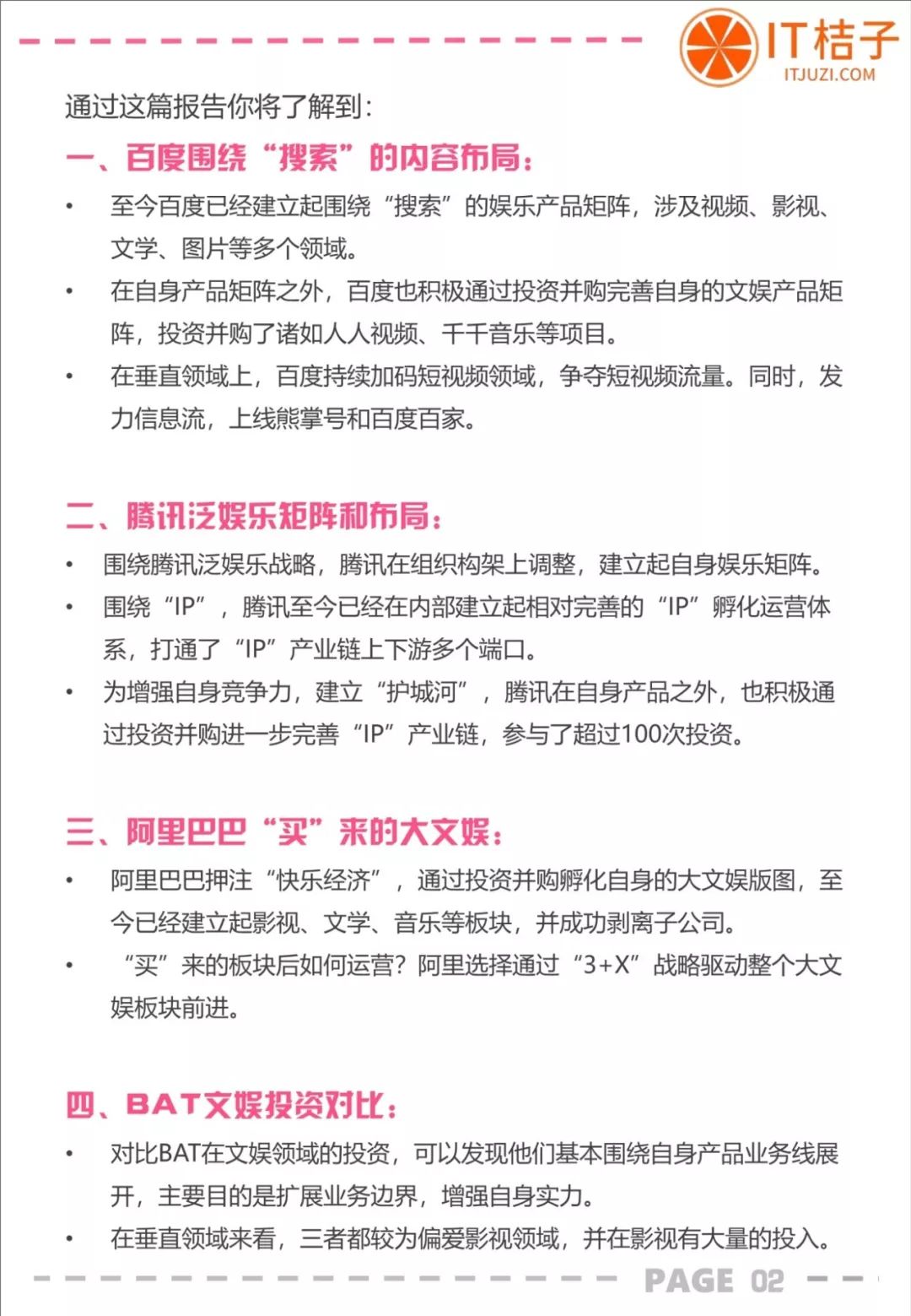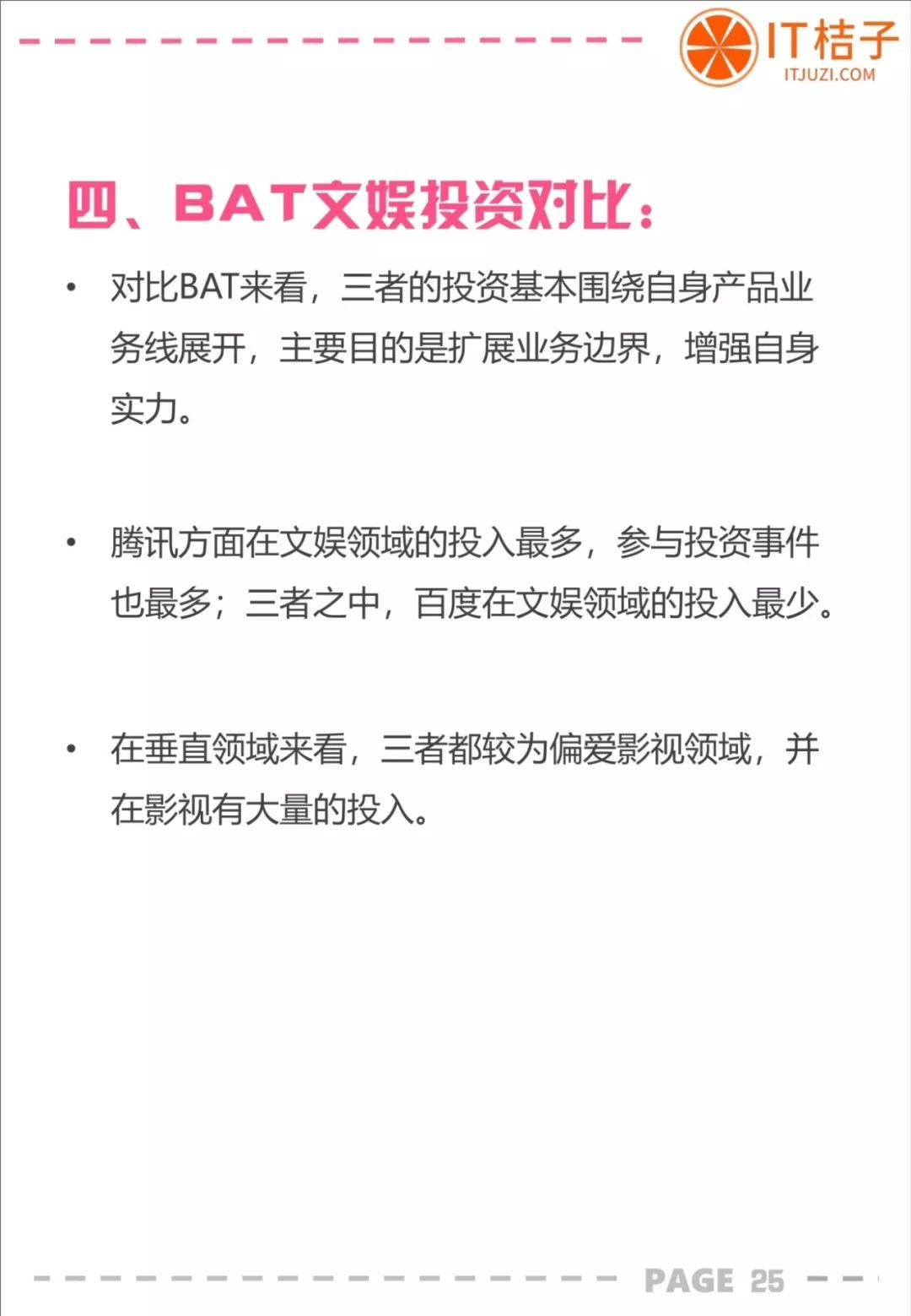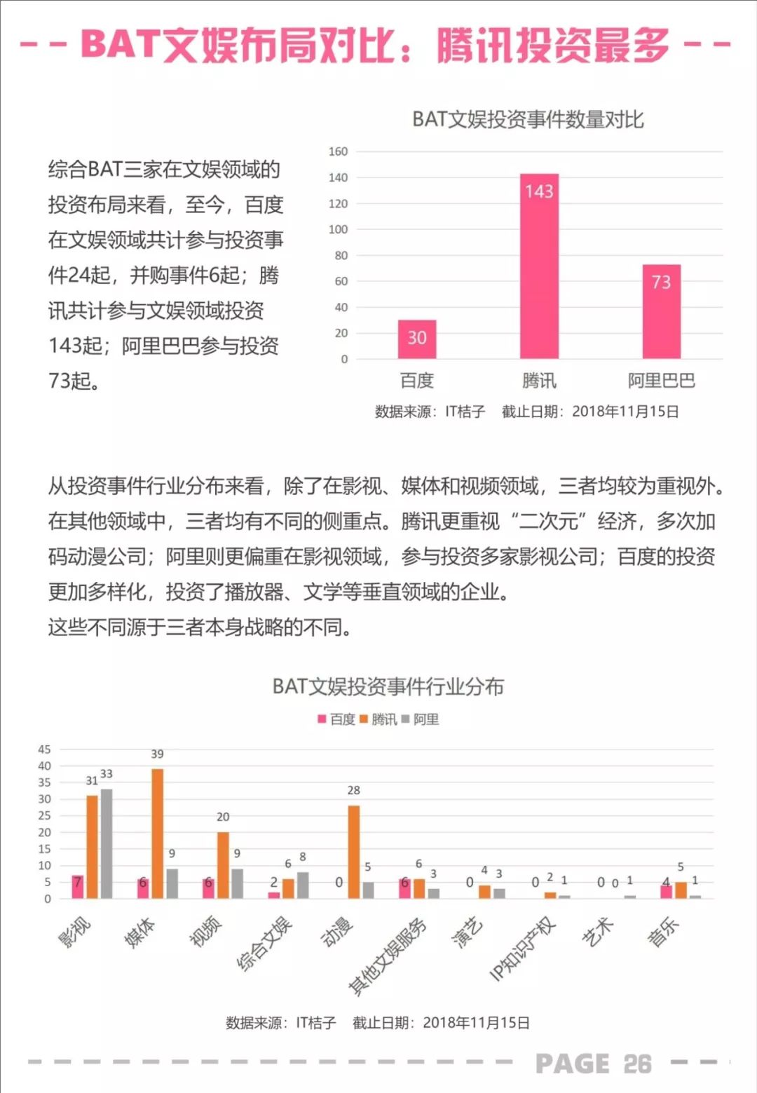 以下是 IT桔子出品的《百度、腾讯、阿里巴巴文娱投资分析报告》全文:
