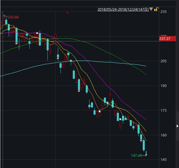 美国当地时间12月24日,苹果股价跌破150美元,近60个交易日跌幅超30%,与今年10月3日创下的最高点相比,市值已经蒸发了超3900亿美元。