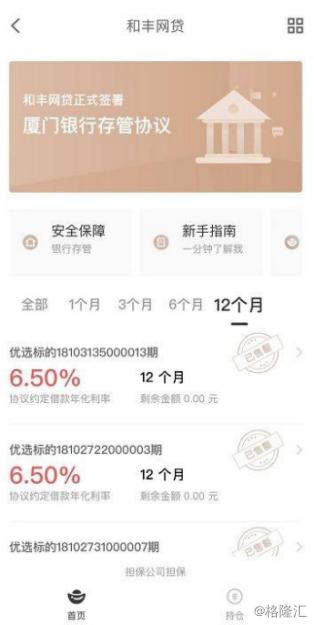 而此次,京东金融APP端的和丰网贷已上线4种短期标的,分别为1个月、3个月、6个月和12个月,对应的年化收益率为5%、5.5%、6%和6.5%,借款额度相对较小,多数为1万元以下的小额个贷。利息在同行中算不上太高,放款额度也相对较小,这些都体现着平台的不成熟。