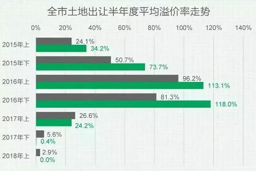 对于开发商来说,最大的动作无非就是土拍拿地。在土地市场火热的时候,遍地都是地王,开发商通过各种渠道去不断的融资,加高拿地的杠杆,而一旦出现楼市下行,土地基本都是零溢价了。我们可以明显的看到,在2016年房价暴涨时,全国范围内土地出让金的平均溢价率都是最高的。