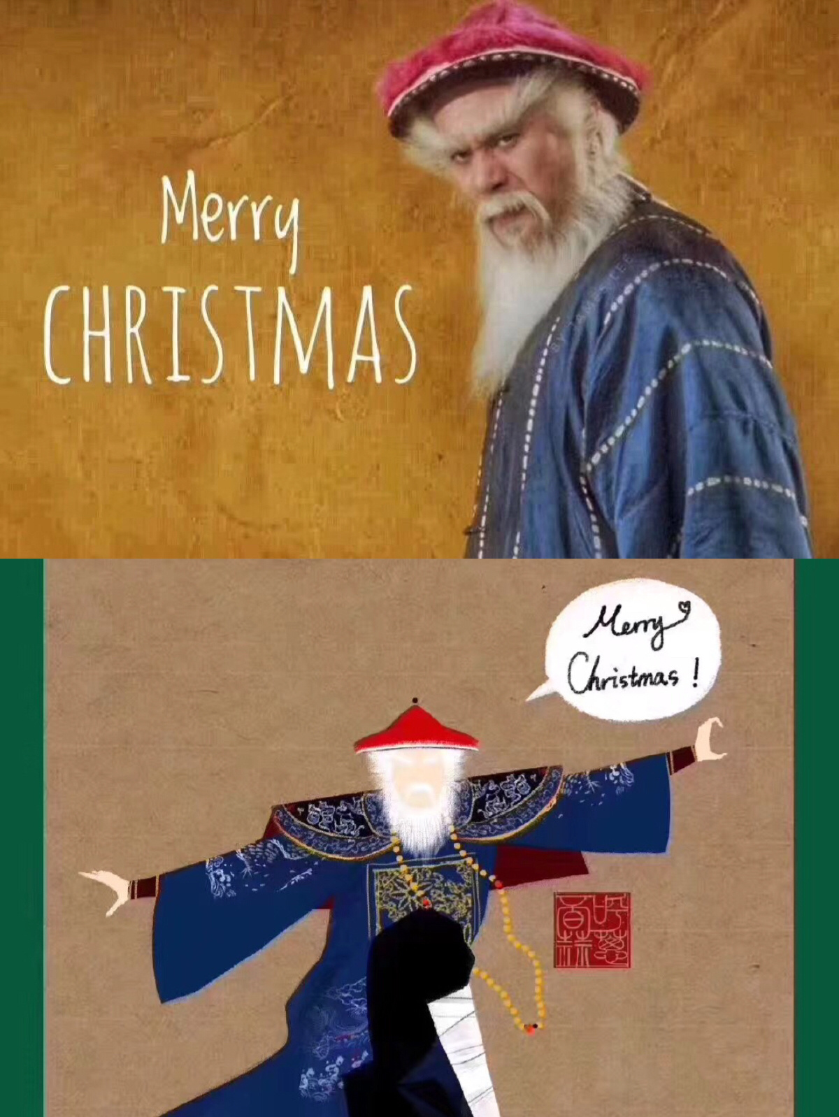 机智的网友们发现鳌拜的形象不仅和海王很像,还和圣诞老人完美贴合。演员徐锦江在平安夜发布了一条微博,配图和文案都很“段子手”,还和网友进行了热烈的互动。很多商家已经开始用徐锦江同款了:FaceU圣诞推出了鳌拜相机特效,B612出了鳌拜圣诞表情贴纸。就连一向宕机反应慢的微博,圣诞下午也上线了圣诞徐锦江表情包,并称之为“微博送给您的专属送圣诞礼物”。
