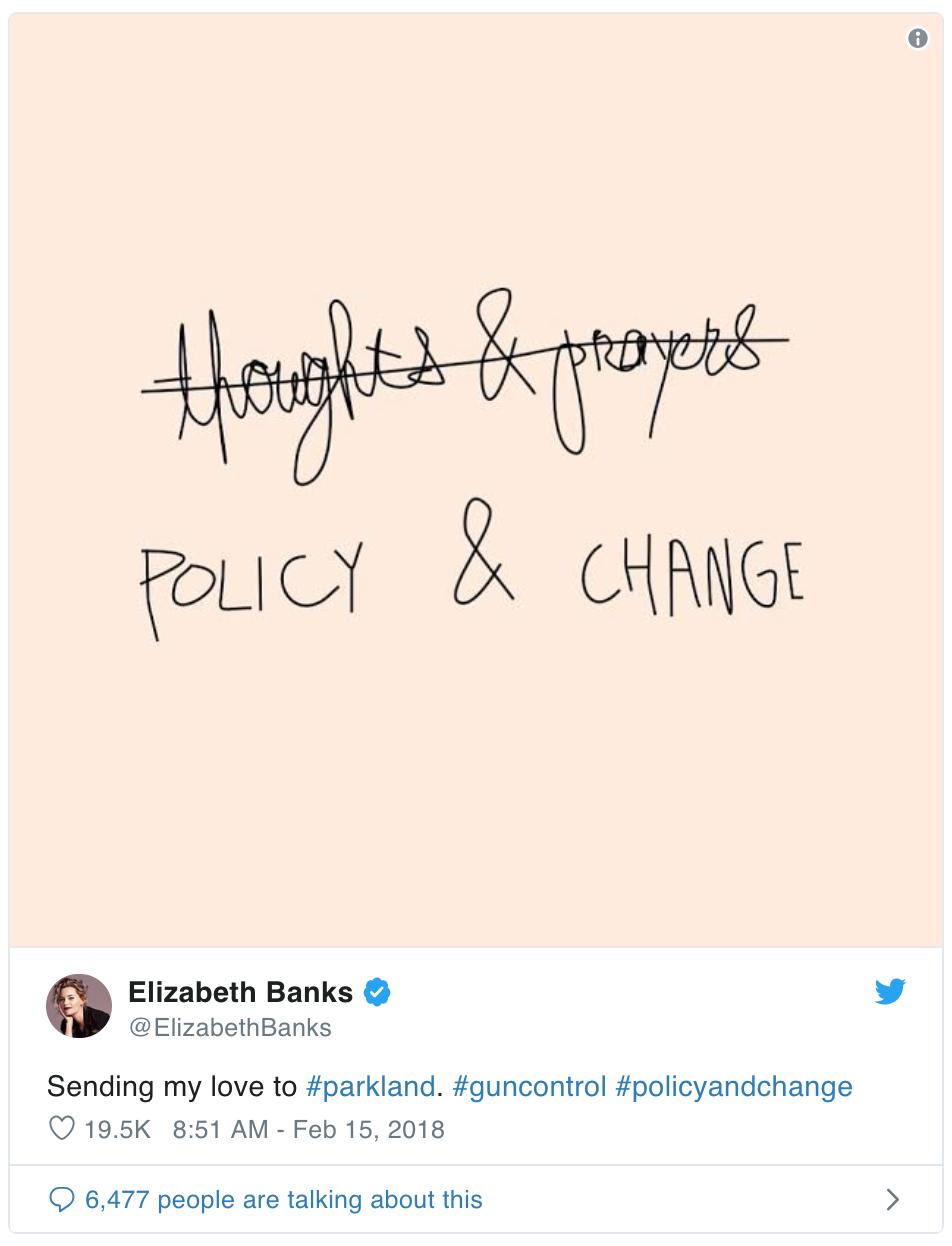 把我的爱送给#parkland医院。#枪支控制 #改变政策 @ElizabethBanks