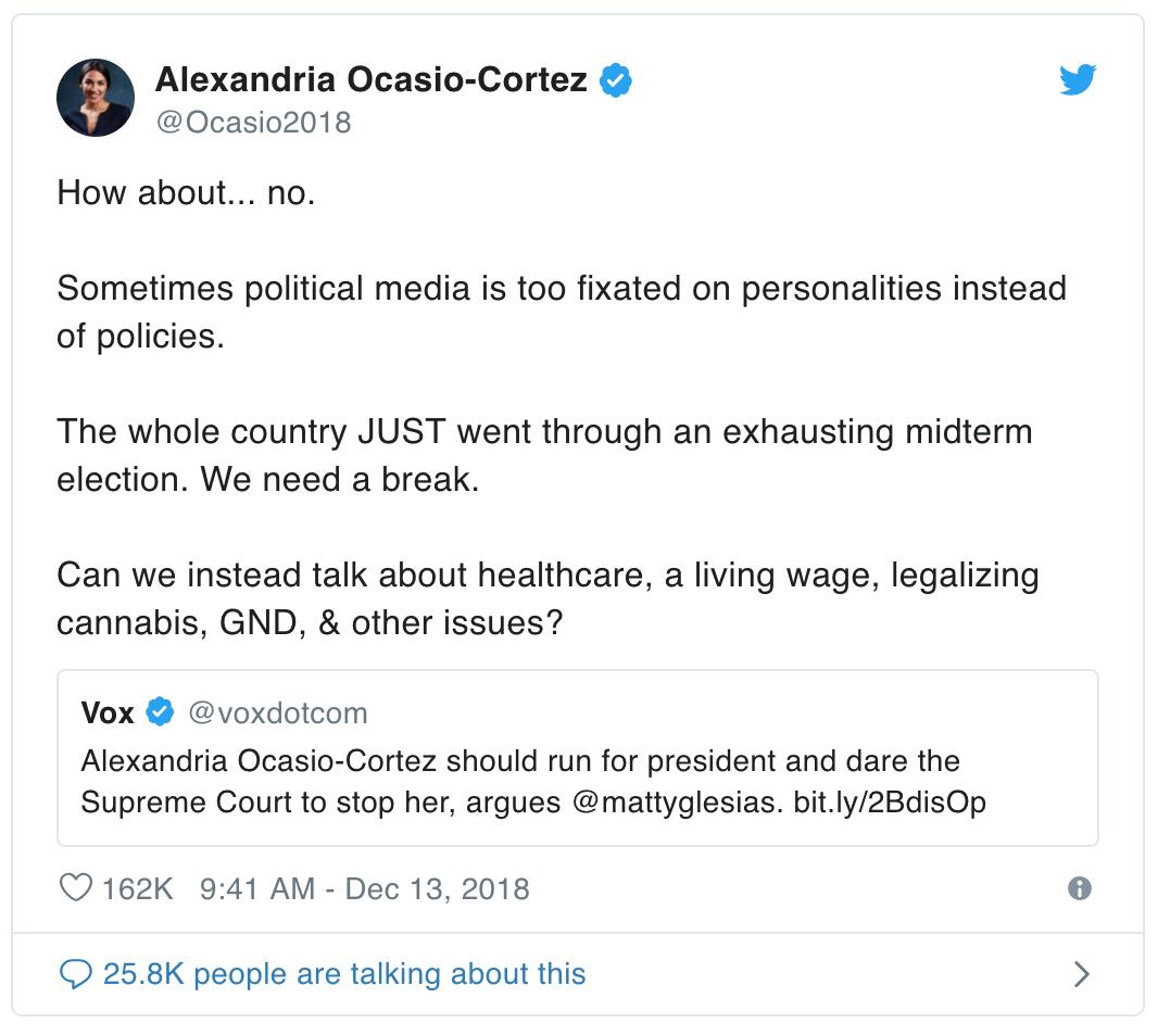 Alexandria Ocasio-Cortez应该去竞选总统,最高法院绝不敢阻止她。@mattyglesias这么说。@voxdotcom