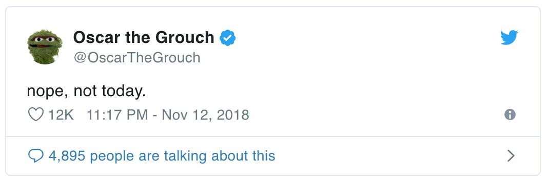 今天不行。@OscarTheGrouch