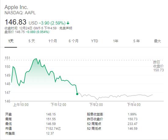 美国当地时间12月24日,苹果股价跌破150美元,市值仅为7153亿美元,低于微软的7225亿美元。苹果公司近60个交易日跌幅超30%,与今年10月3日创下的最高点相比,市值已经蒸发了超3900亿美元。