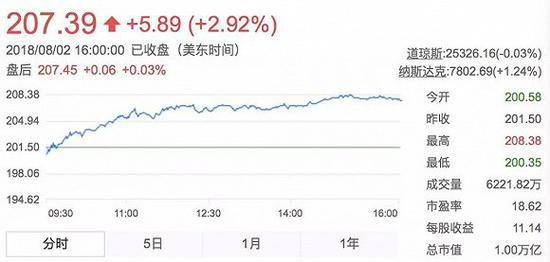8月2日美股开盘后,苹果公司股价盘中一度创下207.05美元历史新高,市值成功突破万亿美元,成为全球首个单市场突破万亿美元的公司。