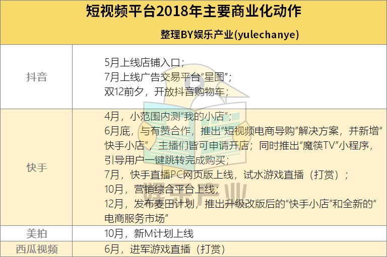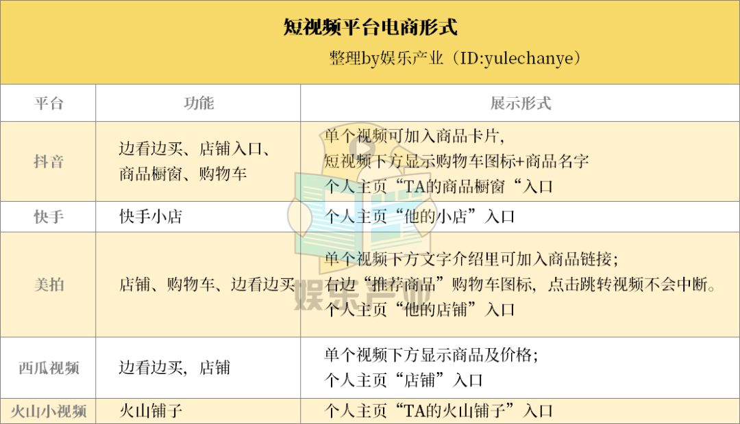 其中,短视频平台动作最为频繁,抖音、快手纷纷加快商业步伐。娱乐产业注意到,除了广告外,短视频电商变现方式正在成为平台以及内容创作机构发力的重点。
