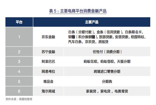 从2010年开始,银行和持牌消费金融公司开始面临一股不可忽视的力量挑战。即以京东、阿里、苏宁为代表的大型电商,它们纷纷设立消费金融服务平台。以消费分期为主,与自有消费场景深度融合,这类平台可以借助电商平台的大数据优势对消费者进行授信和风控。