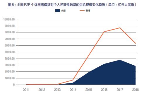 《报告》显示,最初我国个人经营性融资几乎全部都由银行业供给提供。近年来P2P个体网络借贷、小额贷款公司的出现,使得个人经营性融资的供给来源更加多样,P2P个体网络借贷、小额贷款公司、民间金融的供给总和已经约占个人经营性融资供给整体规模的约三分之一。