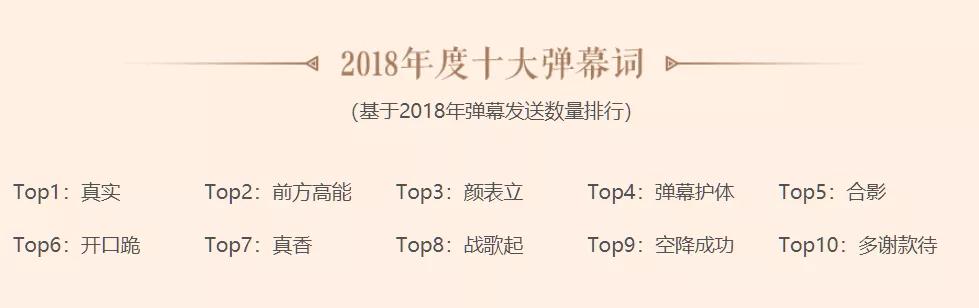 B站在最近发布了一项统计,2018年,B站所有用户发送的超过10亿条弹幕里,“真实”两个词出现了477065次,是弹幕发送数量的第一名,也因此被评为了2018年的年度弹幕,紧随其后的是“前方高能”。