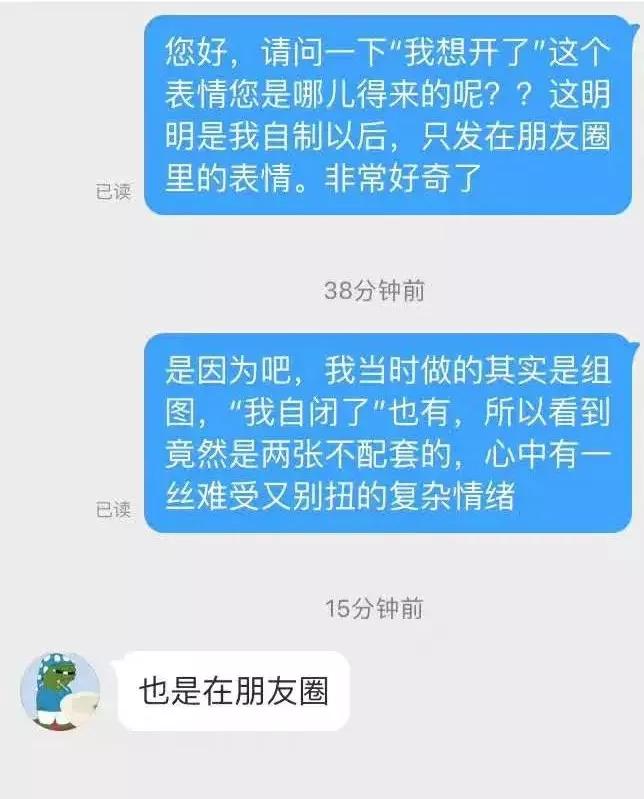 来源可能不同,但无一例外地,这些流行语都因为社交网络的存在而被广泛传播,这种传播是跨越了时间、地点甚至平台。今年有段时间非常火爆的“我想开了”、“我自闭了”的表情包,最初是刺猬君一位同学自己发布在朋友圈中,几个月后突然被微博大V转载,变成了人手一份的热门表情包。