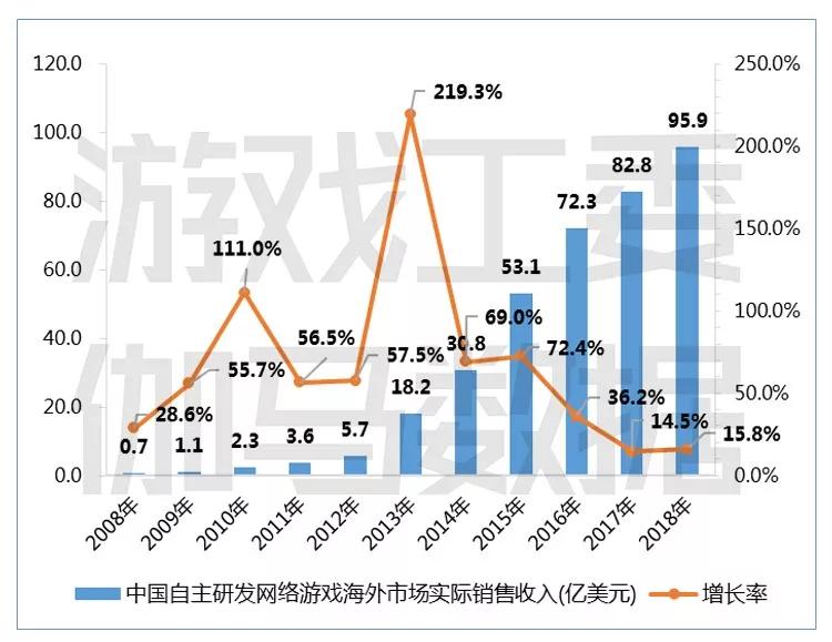 海外出口今年取得了不错的发展势头,根据伽马数据、游戏工委发布的《2018年中国游戏产业报告》显示,2018年中国自主研发网络游戏海外市场实际销售收入达95.9亿美元,同比增长15.8%。超过国内游戏市场实际收入增速5.3%。
