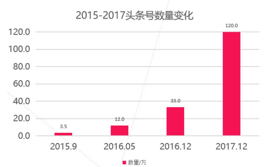 大量的用户对内容的需求巨大,这一时期,不少自媒体创业者涌现,促使今日头条的「头条号」账号数量的增长。