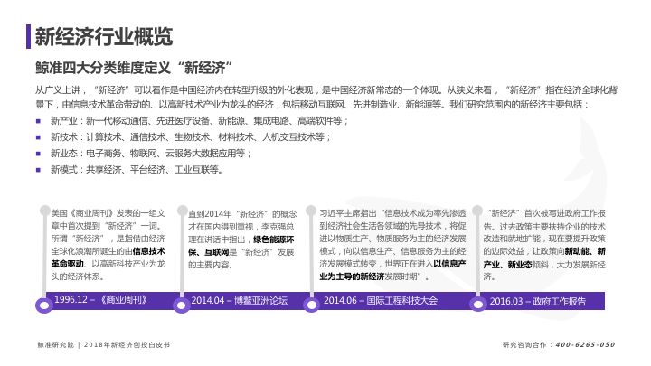 因此,鲸准研究院立足新经济视角,重磅推出《周期、重构、起航—2018中国新经济创投白皮书》,通过定性与定量分析方法的结合,对未来新经济市场的创投趋势及风口行业进行前瞻性判断,在对2018创投生态的年度盘点基础上,为读者寻找未来的优质赛道及标的提供一定的参考建议。