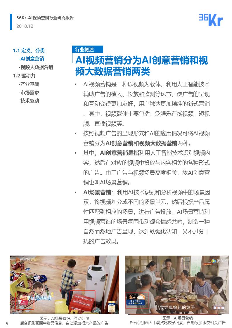 AI创意营销是指利用人工智能技术识别视频内容,然后在对应的视频中投放与内容相关的各种形式的广告。由于广告与视频场景高度相关,故AI创意营销也叫AI场景营销。