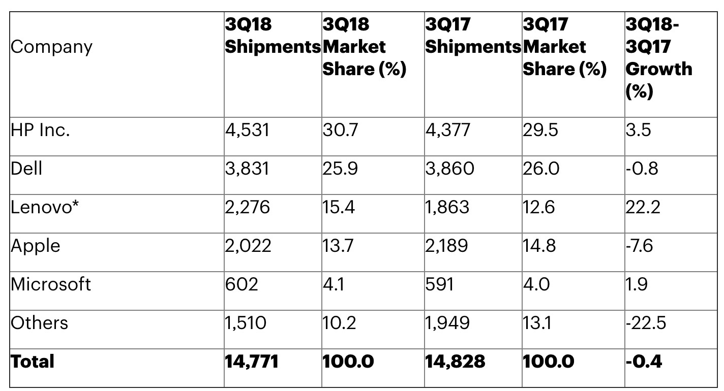 2017年Surface产品受到很多非议,营收表现也不佳。但今年状况明显好转,全年Surface销量和营收均取得增长。今年三季度,微软首次跻身全美前五的PC制造商。