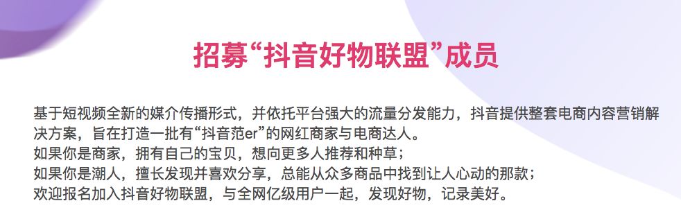 抖音相关人员告诉亿邦动力,12月28日至1月5日期间,平台将推出“好物联盟“招募计划。在此期间,对于申请成为“好物联盟”成员的账户,抖音将移除购物车开通的粉丝数门槛。达人只要拥有自己的店铺,即可报名参加此次活动。