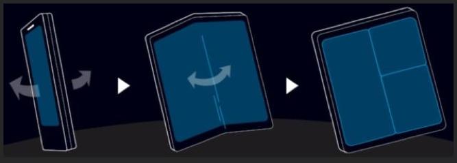 这款原型机由内外两块屏幕组成,机身采用了左右折叠式设计,打开后可以得到一块7.3英寸的“内屏”,看起来像一台方方正正的平板电脑。闭合之后,机身外侧有一块稍小的4.58英寸“外屏”,官方称用户在这块小屏幕上依旧可以使用手机的绝大部分功能。