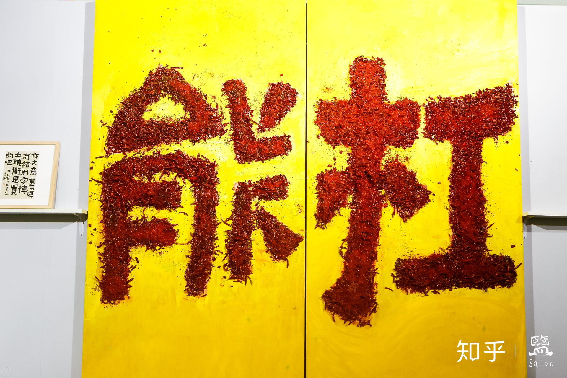制作它的艺术家,事先跑去菜市场买了两麻袋辣椒,混和着火锅底料,用胶水粘在写好的字形上。热辣辣的辣椒糊在手上生疼,就像平时发帖被怼的火气从心里移到了手上。