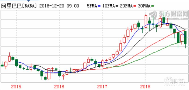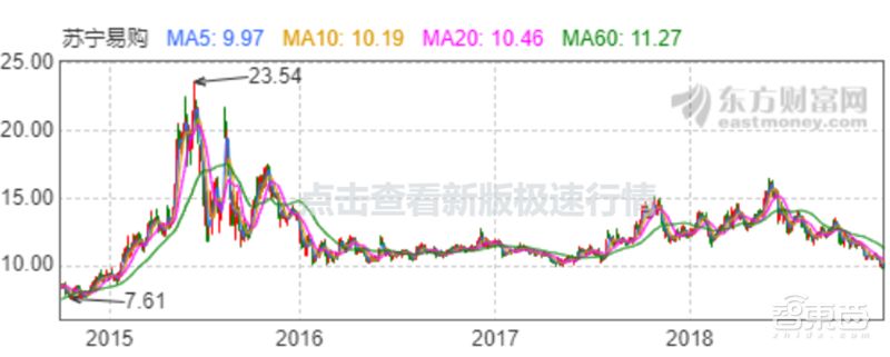 经过三年时间,阿里的股价已经从当时的81.51美元/股飙升到了如今的139.09美元/股。然而苏宁的股价则从15.23元/股跌到了如今的9.85元/股。