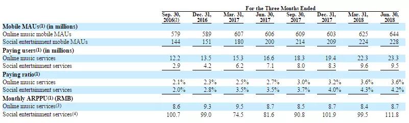 腾讯音乐招股书显示,其Q3音乐用户付费率仅为3.8%,ARPU值为8.5元。相较之下,泛娱乐付费用户占比为4.4%,且ARPU值达到118.5元。这个水平和陌陌、虎牙等直播平台大致相当。