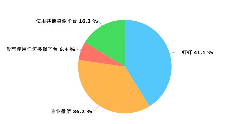 有77%的用户选择了钉钉或者企业微信。但可以理解的是,调研标题会明显吸引那些已经在使用钉钉或者企业微信的用户,因此这个比例在整个企业用户中是被高估的。但具体高估了多少不得而知,从我的主观感受上,一线城市大约能够有接近50%的比例。