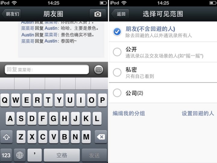 4.2 版本中,可以与朋友视频聊天,朋友圈可以设置权限,也终于可以回复朋友圈照片的评论了。
