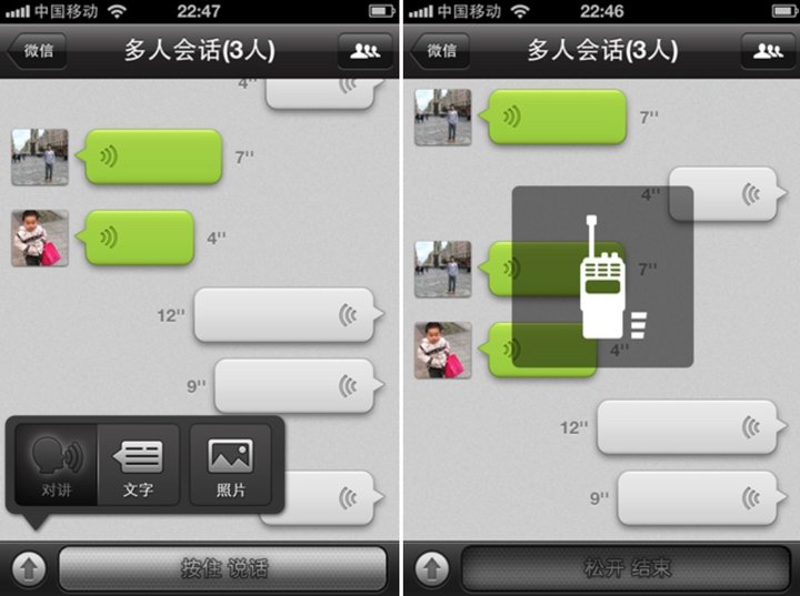 4.5 版本推出了公众号,同时还支持实时对讲和多人实时语音聊天,进化了「摇一摇」和新增群二维码,还有位置导航功能。