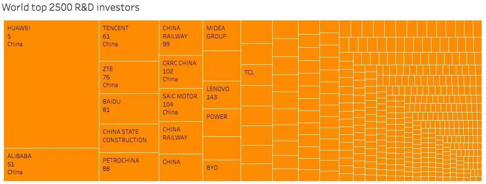 总体上看,中国公司的研发投入还是偏少,“增长潜力巨大”,美国在研发投入上依旧是最舍得出手的老大哥。