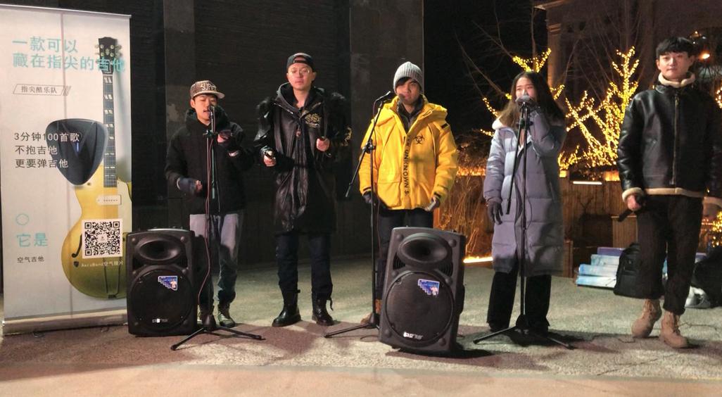 此外,AeroBand团队在2018年末还举办了一场街头艺人的活动,通过在地铁站、景区、商场的户外路演,除了吸引眼球外,还向更多的人展示了空气拨片的使用场景是多元的,家中、地铁、聚会等等都可以随时随地玩音乐。