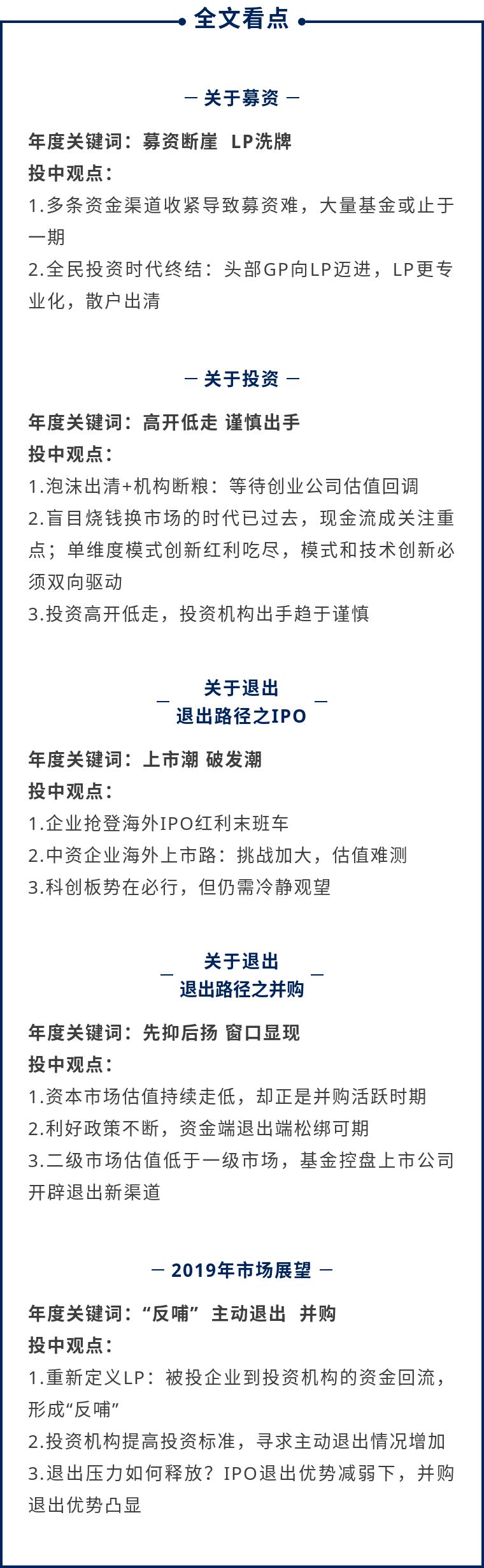 而目前市场消耗的资金大部分是过去两至三年内已募集的存量,近期募资难的效应恐怕还要经过半年到一年的延迟才会进一步显现。可以预见,2019年的投资环境将更加严峻。