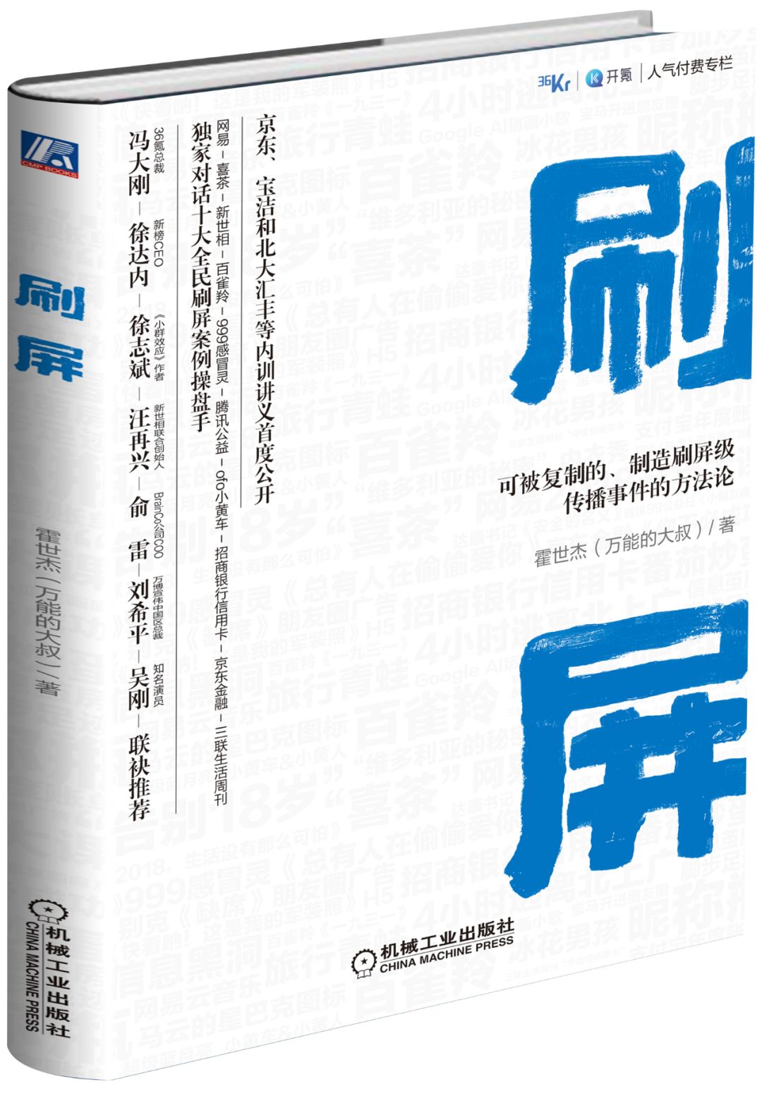 我们几乎每天都能看到刷屏事件,为什么这个图能刷屏?用户参与转发的动力有哪些?大叔花了2年的时间,根据自己的实践和对多个案例的分析,总结的一套刷屏方法论。2019年,很多公司不仅裁员,也砍了不少广告和营销费用,但并不意味着大家不做品牌了,相反,所有企业对移动社交媒体的依赖性更强,对用户口碑和美誉度更加渴求。在移动社媒时代,如何通过公关提升品牌?这本书给出了一套刷屏方法论。如果你是一个移动社媒和去中心化传播的研究者,大叔还推荐另外三本工具书《引爆点》、《疯传》和《必然》。