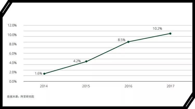 《中国进口消费市场报告》显示,以天猫国际为例,中国跨境电商零售进口渗透率从2014年的1.6%迅速攀升至2017年的10.2%。消费者对海外商品的探索欲和需求变大,是催生代购的主要原因。