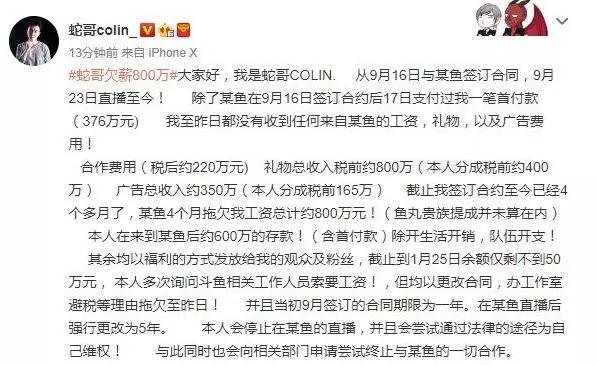 紧接着,虎牙直播也发来“贺电”,表示在此前的诉讼中,法院已经判决蛇哥赔偿虎牙信息科技有限公司违约金2400余万元。不久后,蛇哥宣布回到虎牙直播,斗鱼的4000万违约金诉讼,也暂告一段落。