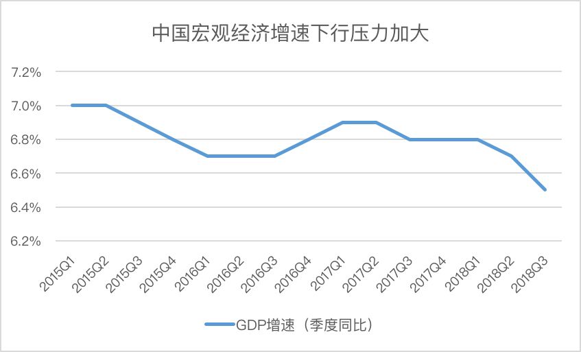 2018年,中国宏观经济增速下行压力加大。前三季度,中国GDP同比增长6.7%,全年完成年初政府工作报告预期的6.5%增速几无悬念。但值得关注的是,固定资产投资、房地产开发投资、社会消费品零售总额的增速均开始放缓,处于近年来低位。
