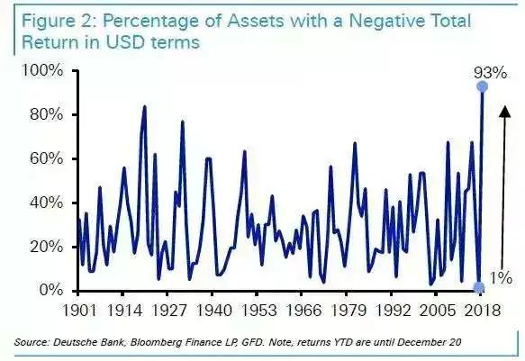 放眼全球,受限于中美贸 易战、中国需求下滑、美联储加息、英国退欧、各国央行逐渐退出量化宽松等因素,全球经济复苏趋势亦有所减缓,资本市场也迎来调整。德意志银行报告显示,截至2018年12月20日,以美元调整后计价,2018年累计负回报的资产占比高达93%。