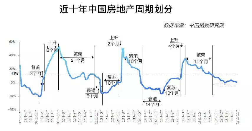 经济十年一轮回,楼市三年一拐点。从2009年到2015年,中国房地产市场经历了两轮完整的小周期,平均时长均在三年左右。本轮周期起步于2015年3月,业内预计本轮周期运行时长将达4年半,在2019年下半年市场触底。