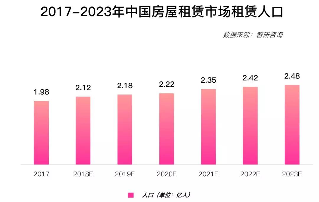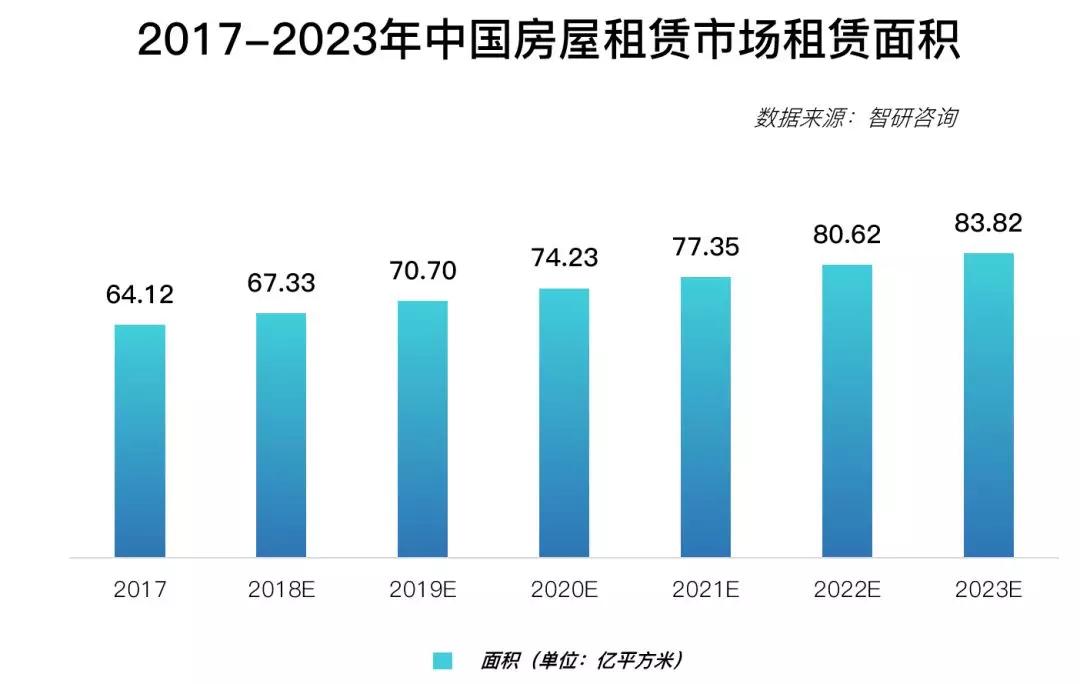 2018年,我国人口13.9亿,租房人群接近2亿,住房租赁市场呈现出前所未有的成长势能。在严格调控、房价高企、观念转变等多重因素的影响下,预计租赁市场未来将持续增长。智研咨询预测显示,到2023年,全国房屋租赁面积可达83.82亿平方米,租赁人口规模可达2.48亿。