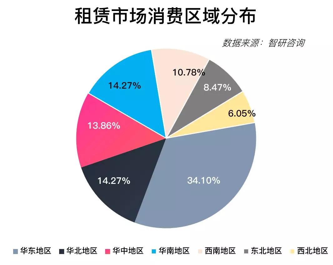 从租赁消费区域分布来看,华东需求最旺盛,占比高达34.1%;华北、华中、华南属于第二梯队,消费需求占比均在12%以上;西南、西北、东北需求相对较弱,占比均在10%上下。