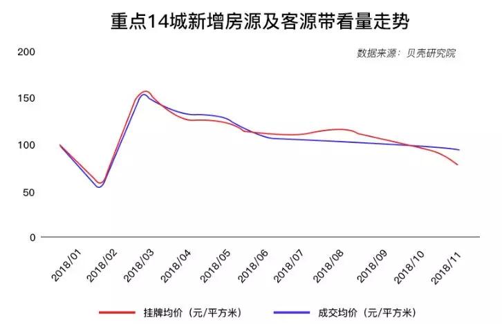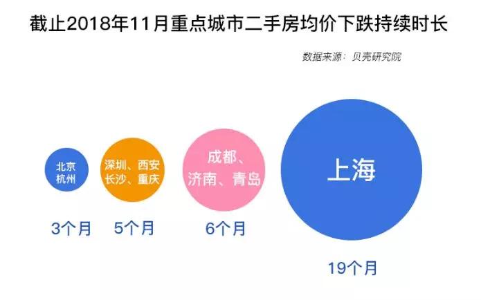 来自贝壳研究院的数据显示,截止2018年11月,北京、杭州二手房均价持续下跌3个月,深圳、西安、长沙、重庆二手房均价持续下跌5个月,成都、济南、青岛二手房均价持续下跌6个月,上海二手房均价甚至持续下跌长达19个月!