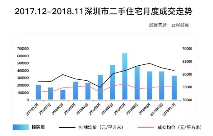 深圳的二手房均价走势,是一线城市中最为平缓的一个,全年价格没有明显的大起大落。需要注意的是,深圳业主的心理预期非常高,挂牌价和成交价之间的落差遥遥领先于北上广。
