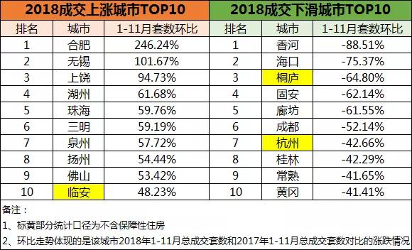 成交套数也是成交规模的重要参考。从成交套数来看,2018年增长最迅猛的城市除合肥外,主要分布在长三角和珠三角地区;2018年下滑最剧烈的城市,主要集中在调控严厉的北京周边,推出限购新政的海口和此前楼市过热的杭州和成都。